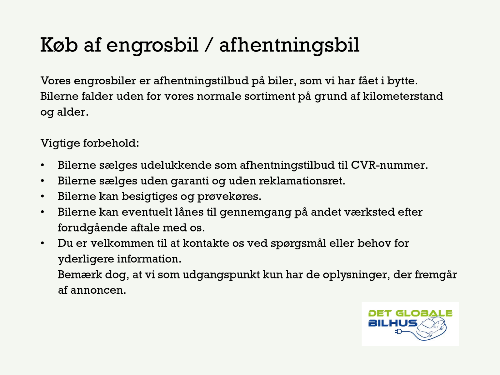 Bilen fremstår pæn og velholdt trods kilometerstanden, kører som den skal og leveres ny synet.